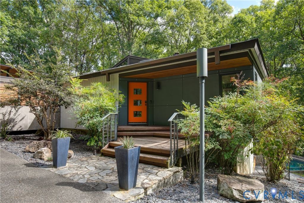 C. Page Highfill designed homes, schools, & churches across Richmond - trained in the Frank Lloyd Wright tradition through his mentor Bud Hyland. In 1988, he got to design for his favorite client: himself & his family. The result is 380 Flag Station Road. Only on its second owner, the home has undergone thoughtful upgrades, along with extensive landscaping & hardscaping, all carefully executed to honor and preserve Highfill's original design intent while elevating livability for today. Original slate floors are paired w/ warm hardwoods, while three wood-burning stone fireplaces anchor the home. The main living space is centered around a fireplace & extends to a balcony overlooking the backyard. A comprehensive 2012 renovation introduced custom Martin Star cabinetry in the kitchen & baths, complemented by Sub-Zero/Wolf appliances & Caesarstone counters in the eat-in kitchen. The dining room has upgraded lighting & retractable shades. All three main-level bedrooms have custom walk-in closets & private balconies, while the primary suite offers an ensuite bath, its own stone fireplace, & walk-in closet. Downstairs, is a large den, a stone fireplaces, a 4th bedroom/office, & workout room. The full bath features a one-of-a-kind solid walnut vanity & shelving by local furniture maker Zach Schaffer. The home is flooded with natural light & runs on smart automation - Nest thermostats, ADT security w/ cameras, & indoor/outdoor speaker wiring. Outdoors, the just over 3 acre property is a private retreat. A transformation by Ultimate Pools introduced an EcoSmart copper ionization pool w/ auto cover, gas heater, retractable deck shades, & gas fireplace. Landscaping & lighting lead down to the pool, while the fenced backyard has a shed, chicken coop, & firepit. Trails wind through the property, w/ bridges crossing a creek, & an invisible fence extending across much of the acreage. Tons of storage! Located off of River Rd., near 288, St Catherine's fields, Collegiate Robins Campus, Portico Restaurant, & multiple country clubs.